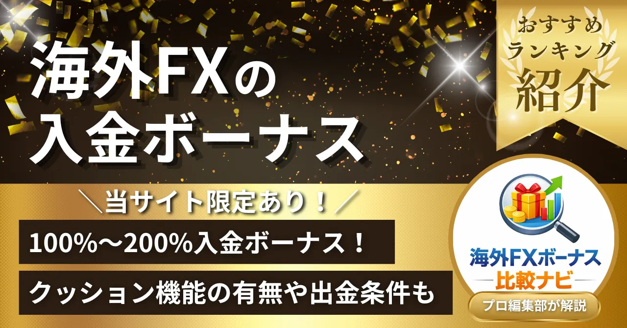 なお、海外FX業者の入金ボーナスと口座開設ボーナスを含めた総合ボーナスは「海外FXボーナス比較(口座開設ボーナス・入金ボーナス)【2026年最新キャンペーン】」で紹介していますので、併せてチェックしてみてください。